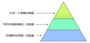 ポイント:トレーナー認定制度、専用マニュアル整備、定期的な情報共有、育成実績の評価への組み込み