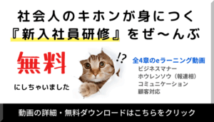 ビジネスマナーとホウレンソウなど、ビジネスに必要な知識習得とケーススタディによるスキル習得ができる